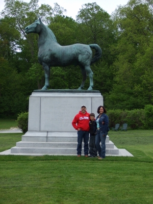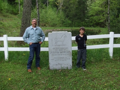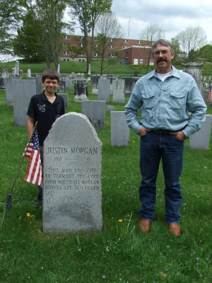 Frank and Cary at the grave marker for Justin Morgan (the man)