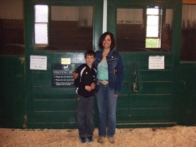 Frank and Leigh Ann in front of horses stalled behind the gift shop.