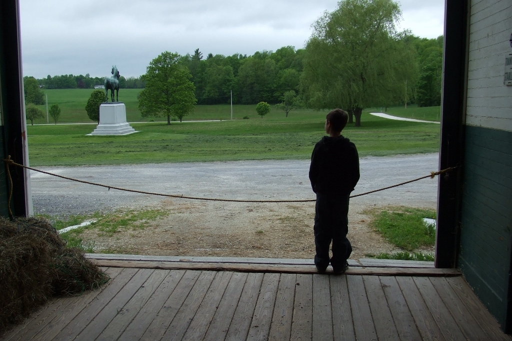 Frank looking out of the UVM barn at Figure's (Justin Morgan) statue.