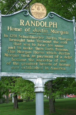 Memorial marker for (Figure) Justin Morgan (the horse) near Tunbridge, VT.